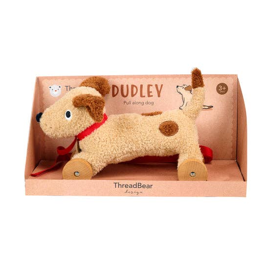 A fabulous furry pull along puppy dog on wheels, made with the softest fabrics and FSC-certified wood for the wheels.