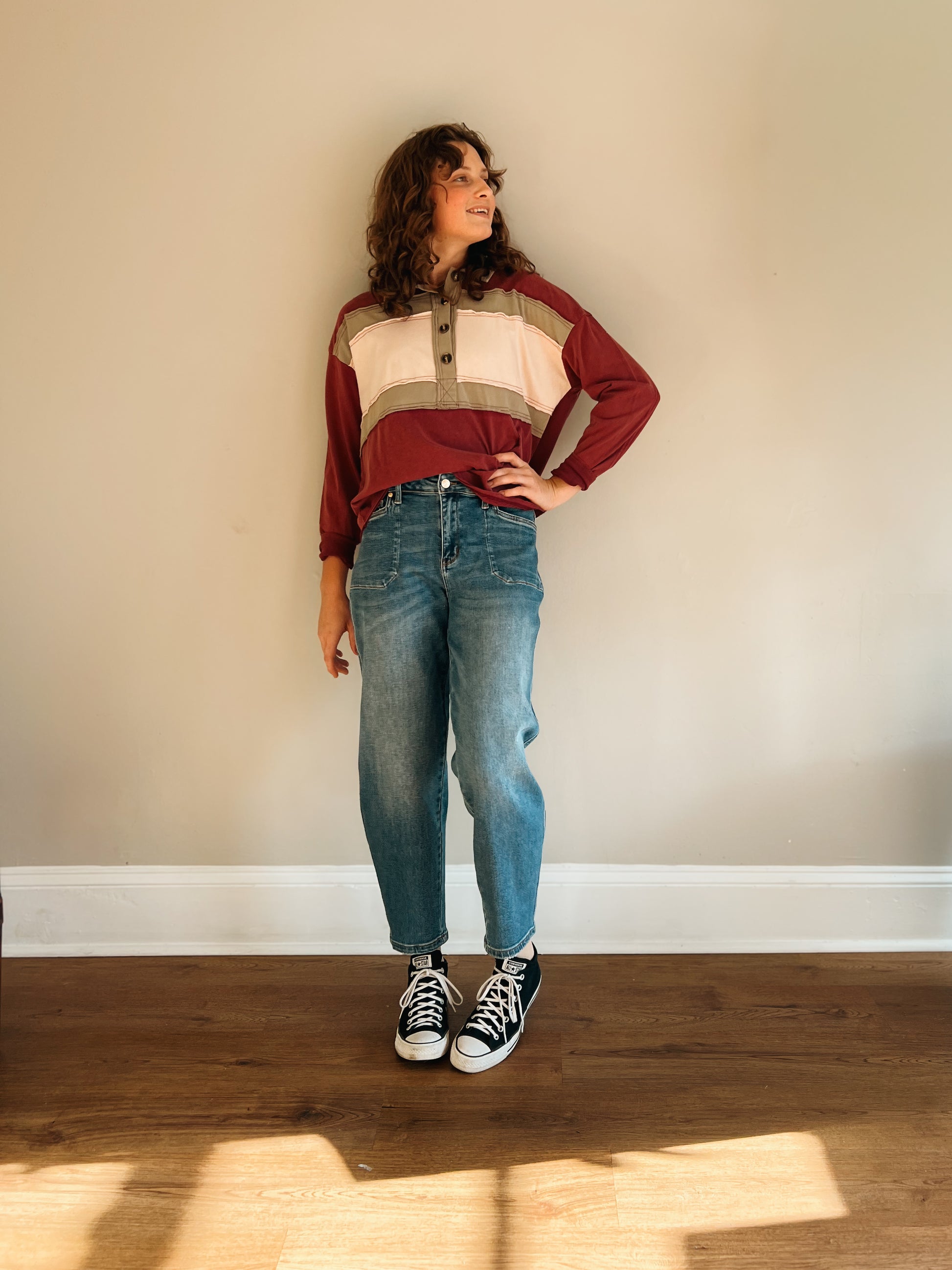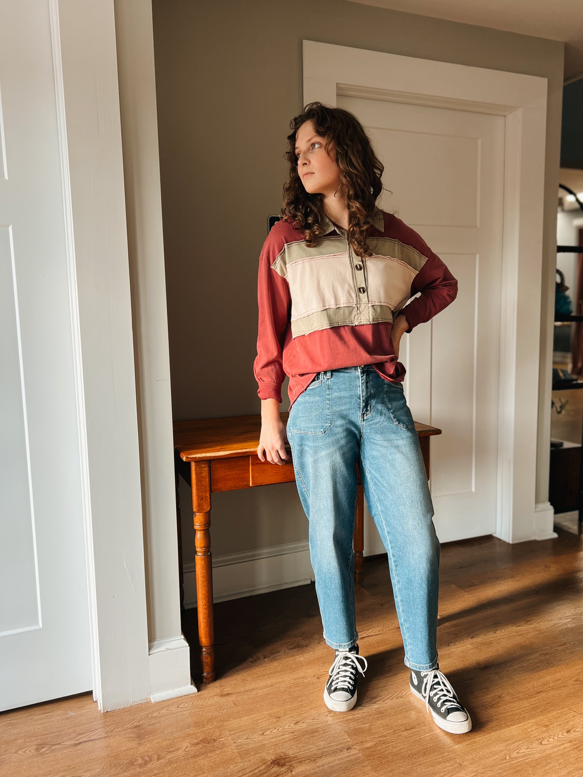 Plum Crazy Collared Half Button Top