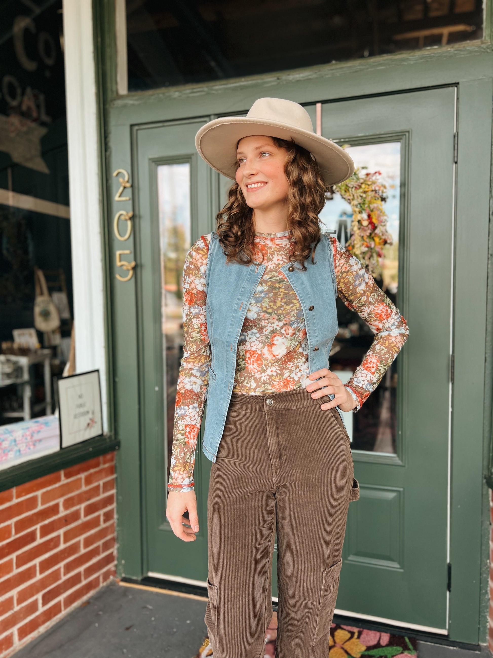 layering piece, long sleeve, crew neckline, floral pattern, unique top, semi sheer fabric, stretchy fabric, mesh top, fitted silhouette, exposed stitching, vintage style, feminine
