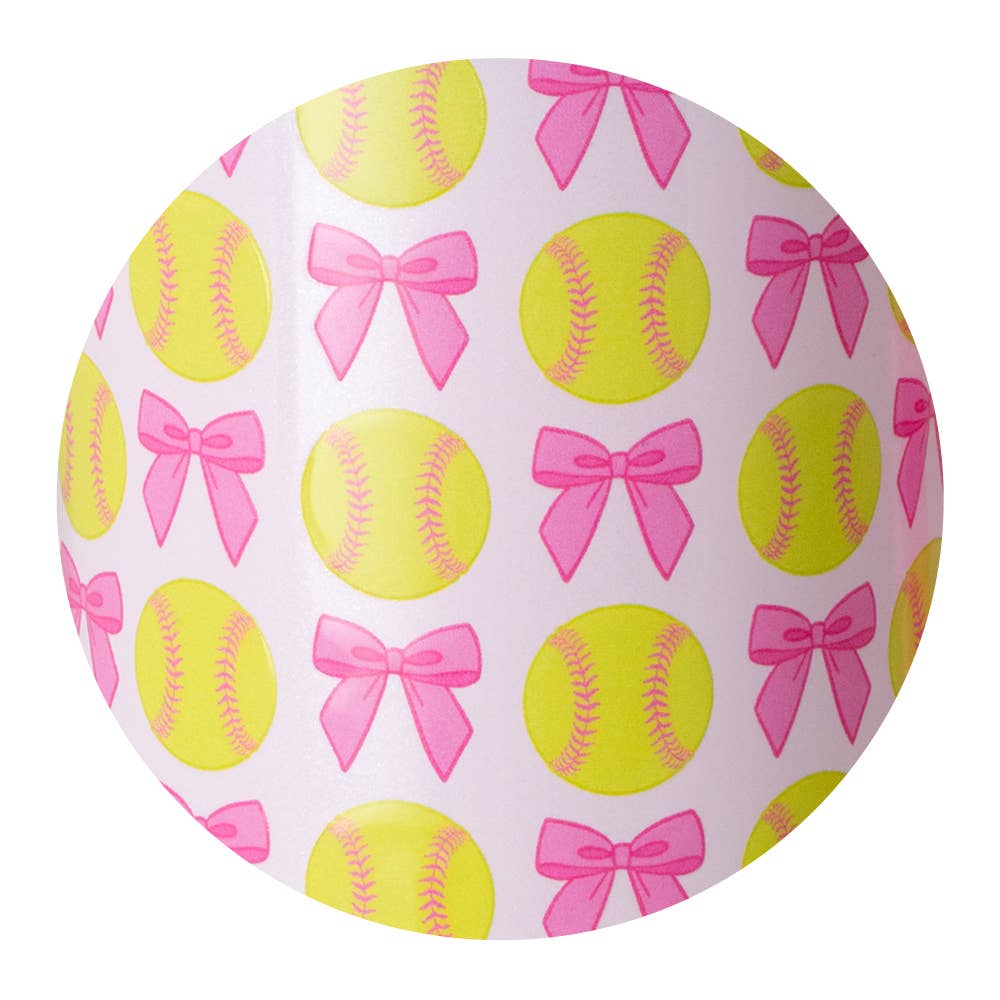 Hit like a girl and show your spirit with fun pink bows and bright yellow softballs! 🥎
