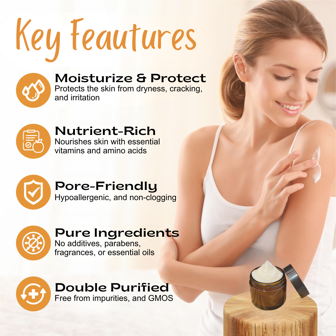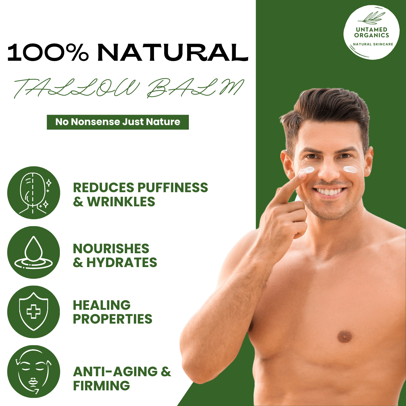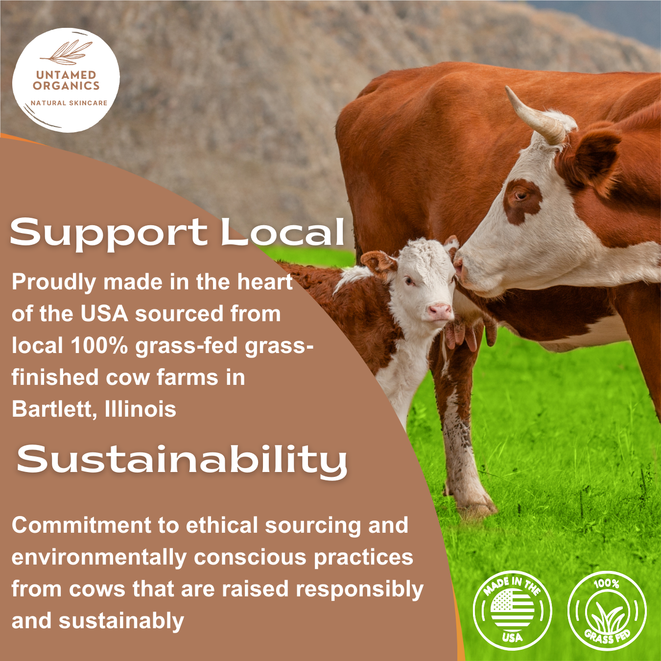 PURE & NATURAL: Handcrafted from 100% grass-fed beef tallow, organic castor oil, organic raw beeswax, and pure frankincense essential oil for a luxurious and effective skincare solution.