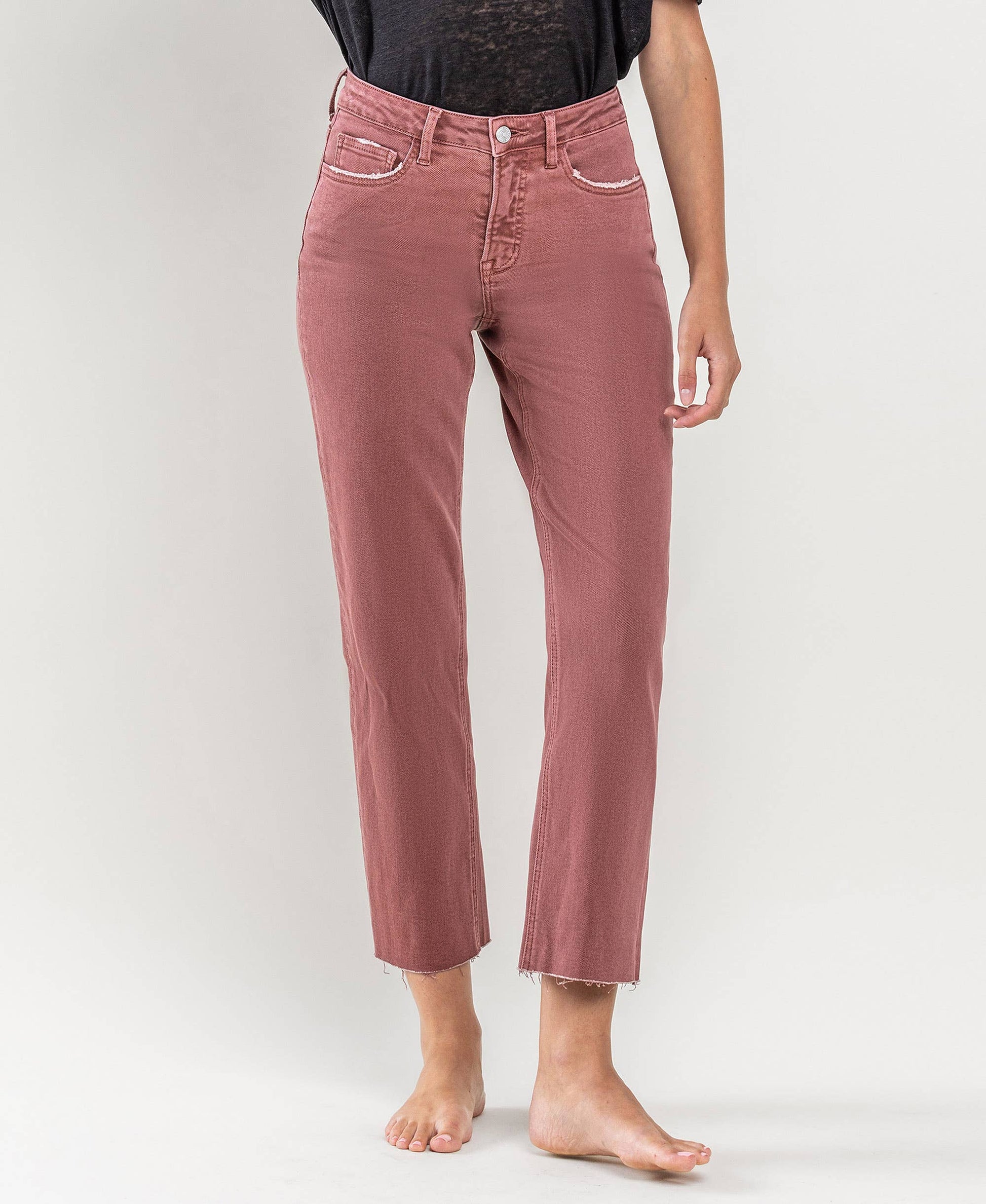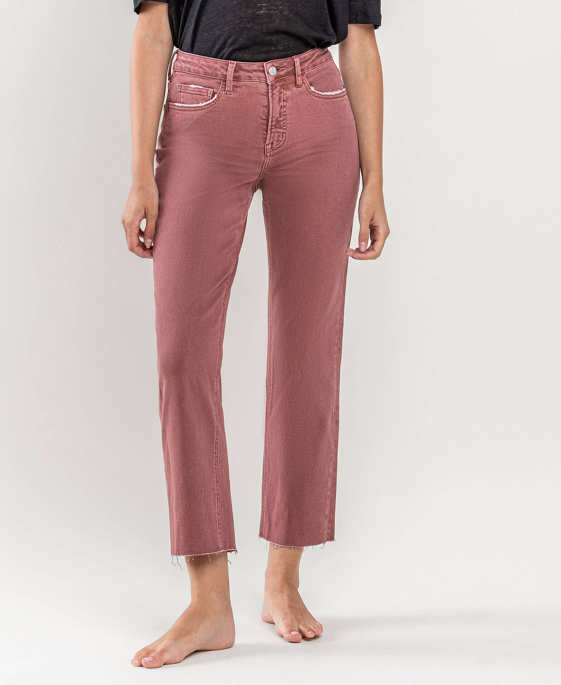 Strawberry Wine Tummy Control Crop Straight Jeans
