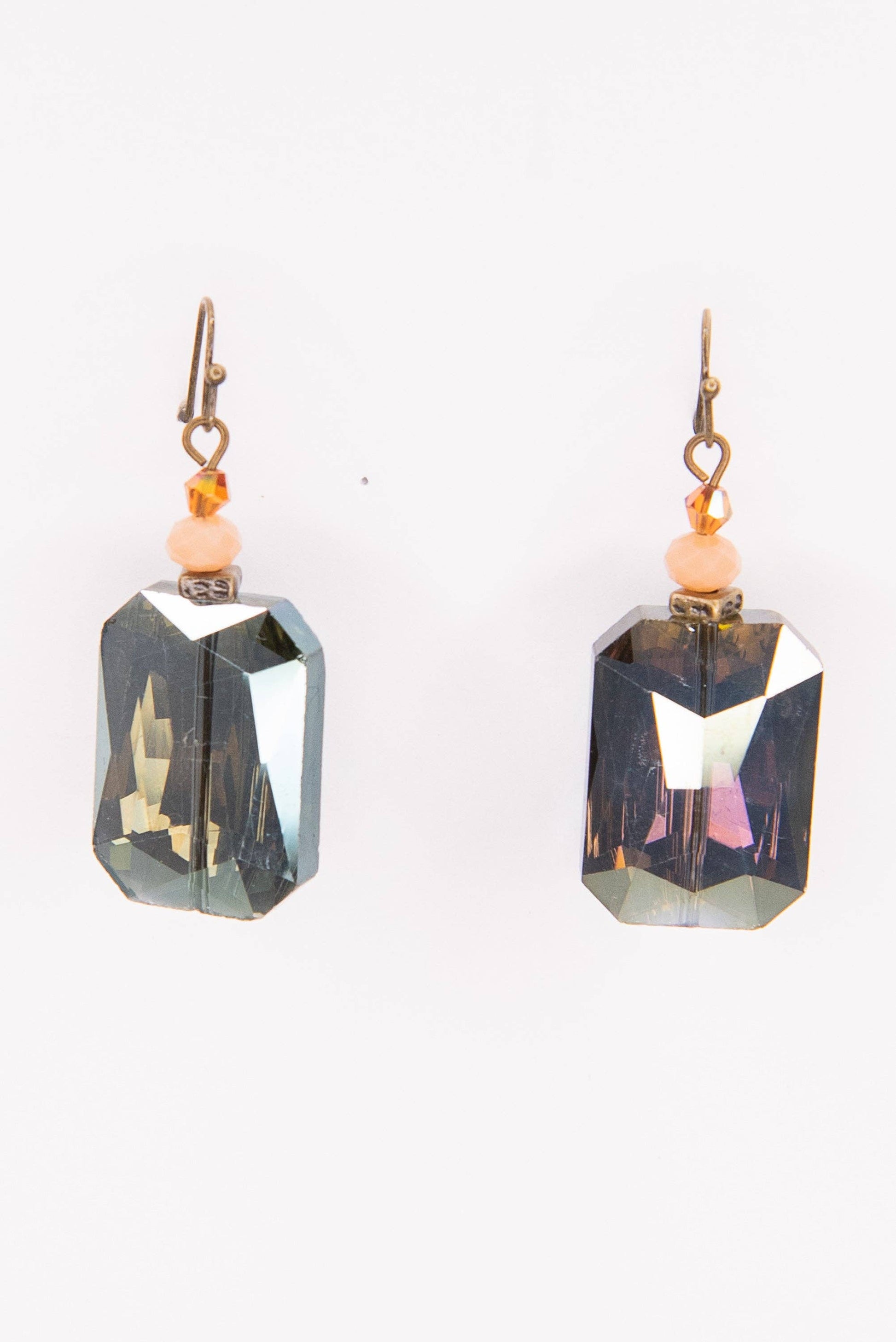 Fishhook Dangle translucent blue earring. Earring has small blush beads attached. Earring 2" long and 1" wide Pairs well with Winnie Necklace